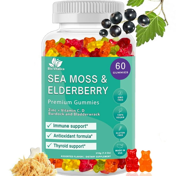 Sea Moss Gummies Elderberry Biovitalica Vitamin C D Zinc Irish Seamoss Vegan Gummy With Sea Moss Gel Powder For Immunity Detox Dietary Supplement Walmart Com